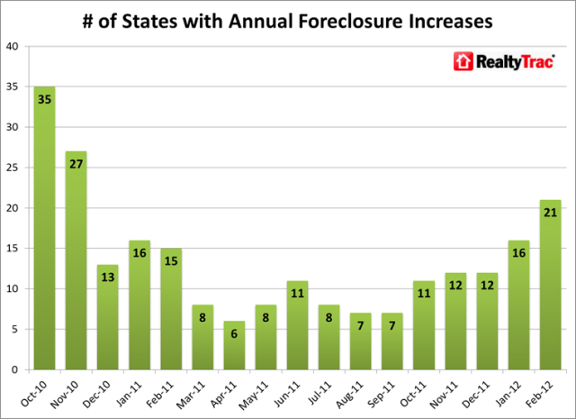It’s changed a bit in recent months during the first quarter of 2012, and according to RealtyTrac the # of states with annual foreclosures are increasing – but that’s widespread across the United States. That doesn’t mean Michigan and Metro-Detroit is going to see a foreclosure boom.
